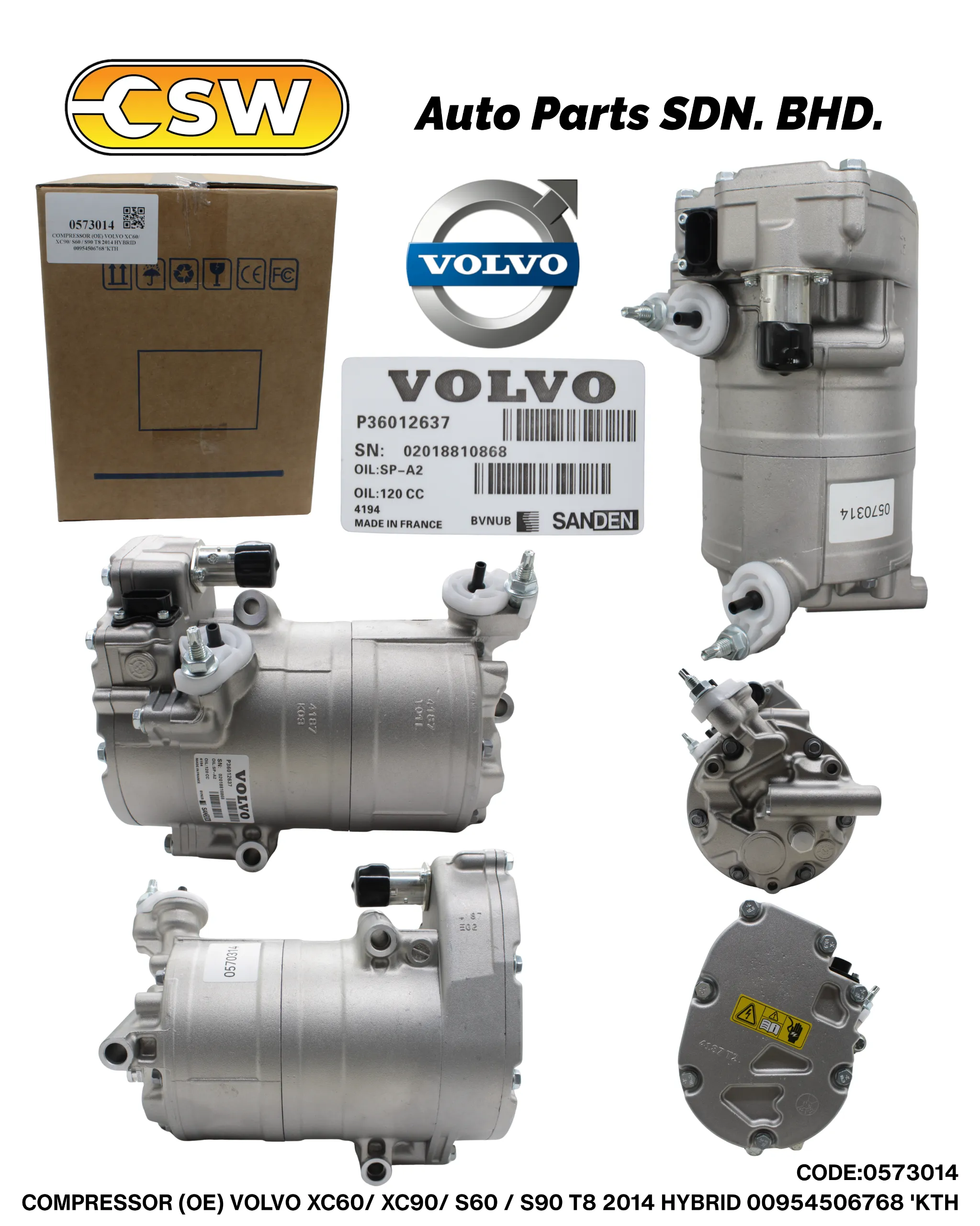 COMPRESSOR (OE) VOLVO XC60/ XC90/ S60 / S90 T8 2014 HYBRID 00954506768 ‘KTH