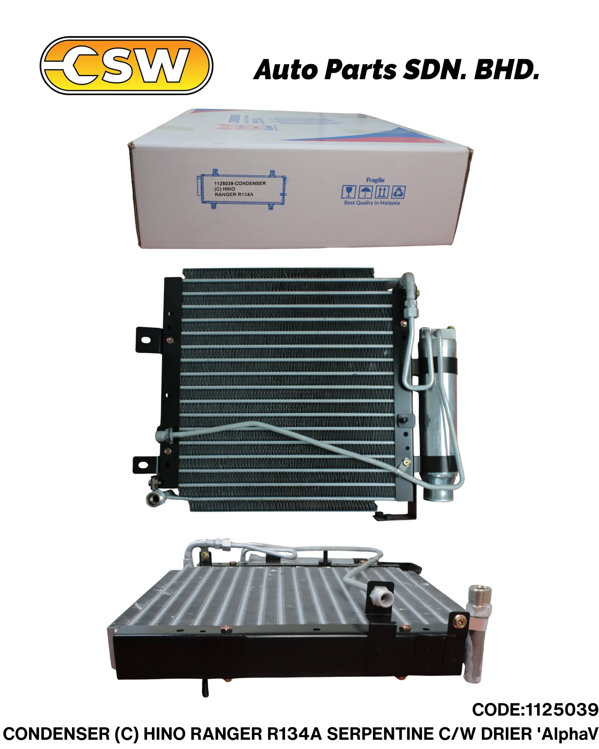 CONDENSER (C) HINO RANGER R134A SERPENTINE C/W DRIER ‘AlphaV