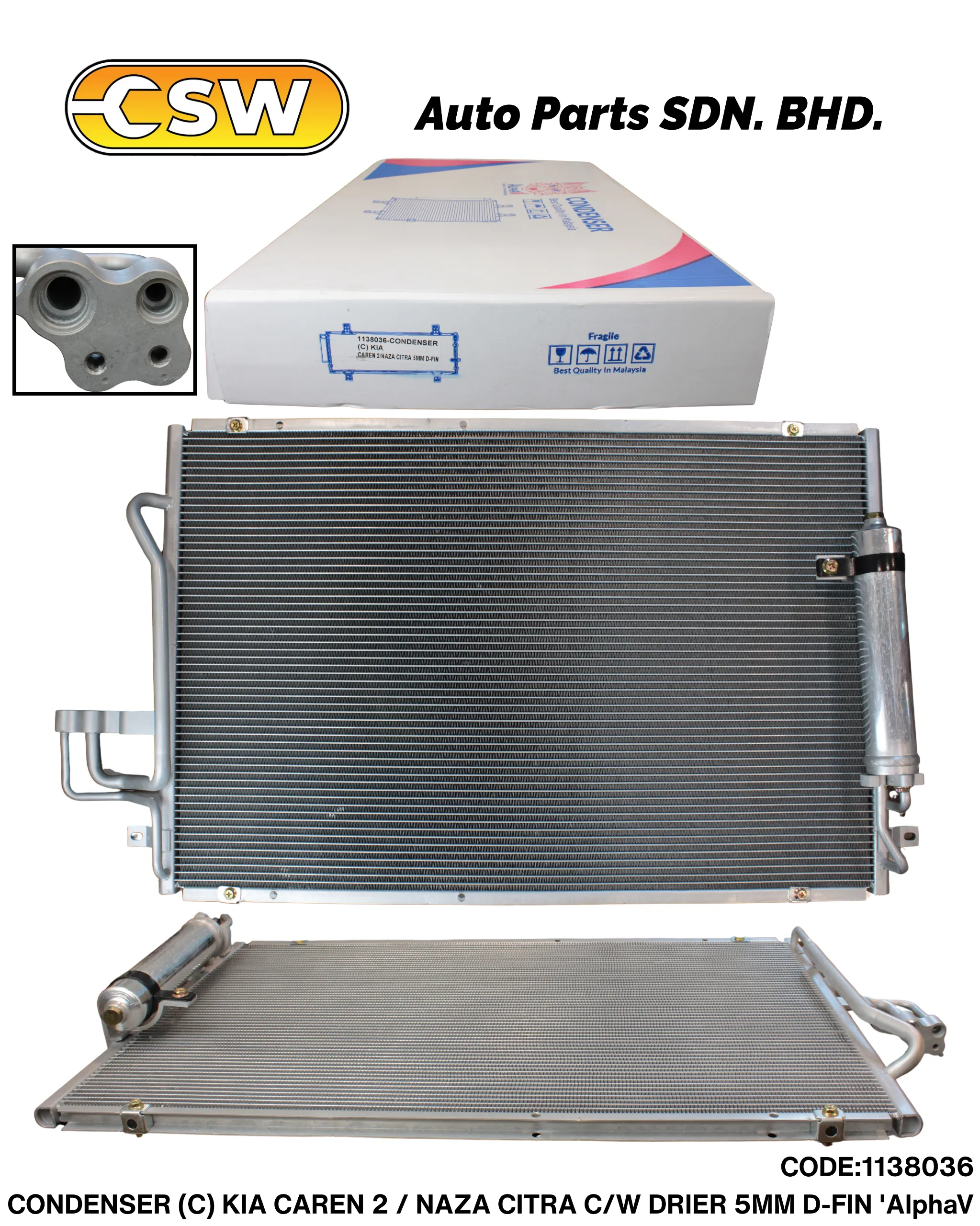 CONDENSER (C) KIA CAREN 2 / NAZA CITRA C/W DRIER 5MM D-FIN ‘AlphaV