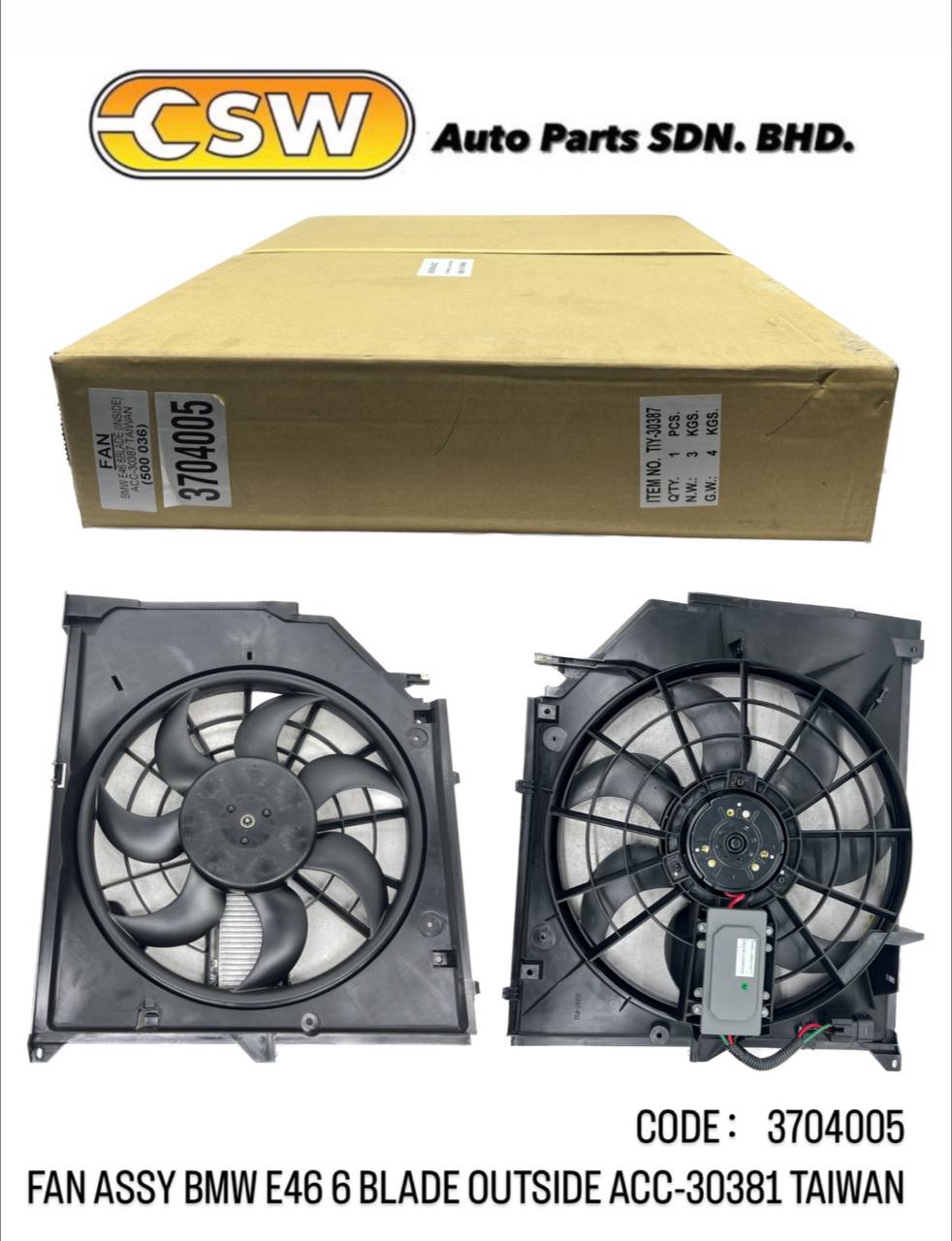 FAN ASSY BMW E46 6 BLADE OUTSIDE ACC-30381 TAIWAN