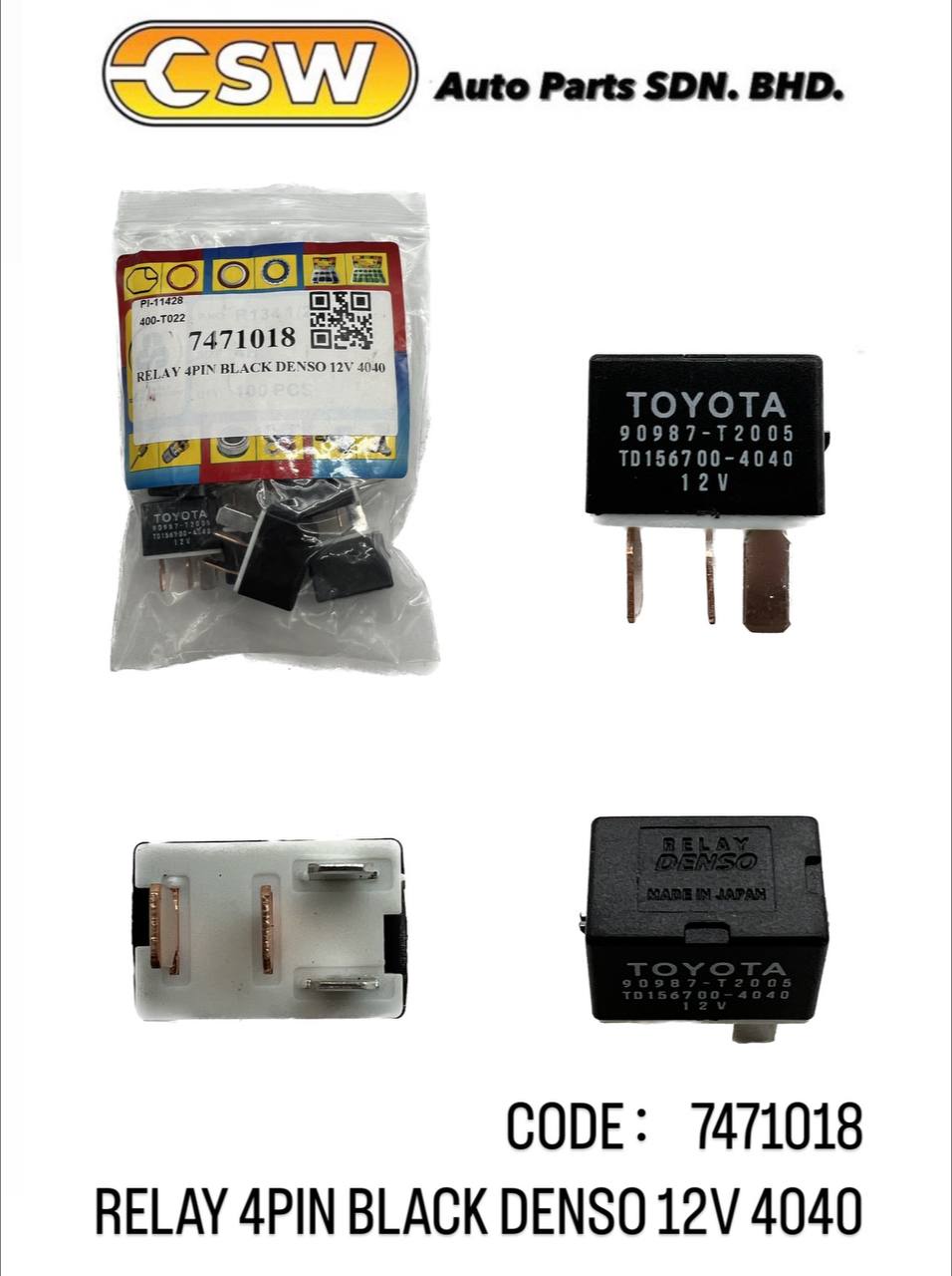 RELAY 4PIN BLACK DENSO 12V 4040